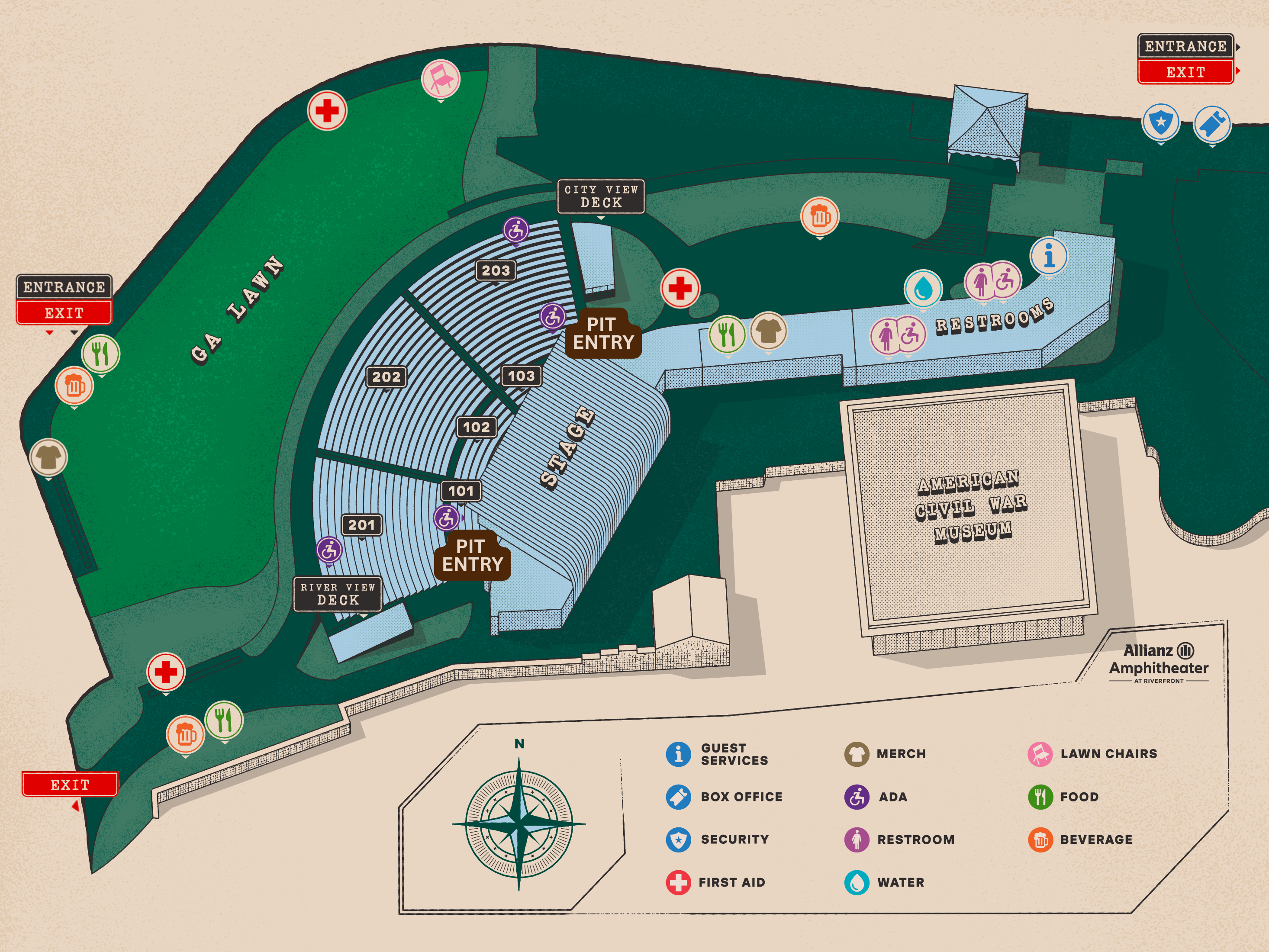 Get lost in the music. Not the venue. Allianz Amphitheater is the newest amphitheater in the Richmond, so here’s a map to help you get around.
